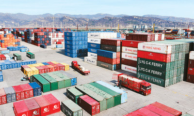 上合组织(连云港)国际物流园自2015年建立以来,截至今年1月底,累计完成物流量3.32亿吨,物流业主营收入206.26亿元。图为上合组织(连云港)国际物流园内的中国外运集装箱场站。 王健民摄(人民视觉)